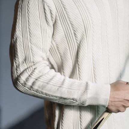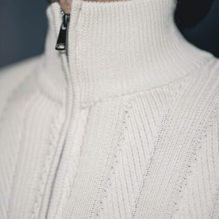 Aristo Cotton Knitted Half Zipper Turtleneck (Vanilla White)